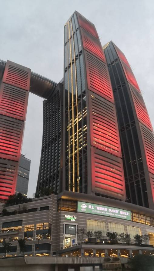 重庆来福士总占地面积约为91782平方米,总建筑面积约为112.3万平方米,由8栋超高层塔楼,6层商业裙房和3层地下室组成,是集大型购物中心、高端住宅、办公楼、服务公寓和酒店为一体的城市综合体项目。