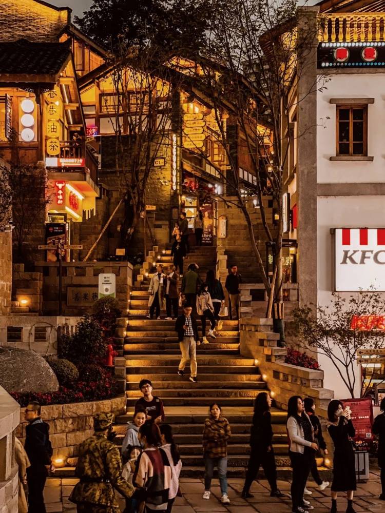十八梯连接着重庆的上半城和下半城,一条石板铺的老街从山上蜿蜒到江边。